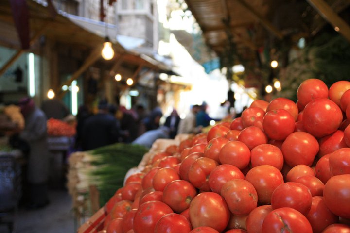 Finita Hashimini street ci ritroviamo di nuovo davanti alla moschea Al-Husseini. Dietro si sviluppa il mercato King Talai dove si vende frutta e verdura. Le vie sono coperte, strette, piene di gente che gira persino con il carrello come al supermercato, lampadine nude per far luce, montagne di pomodori, limoni e il resto. Compro un bel sacchettone di fiori di camomilla e dei datteri freschi molto buoni. Il mercato è continuo gridare per attirare la clientiela e tutto questo ci diverte come bambini, mentre girovaghiamo e veniamo invitati a provare frutta e verdura. Il nostro passaggio inquesta zona sembra essere ancora un piccolo evento, siamo osservati e i sorrisi non mancano, insieme agli occhiolini che mi fanno i ragazzi del posto.