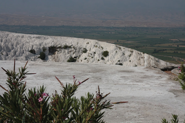 Pamukkale in turco vuol dire "Castello di cotone", nome sicuramente azzeccato per questa colata calcarea bianchissima ed enorme, lunga circa 2700 metri e alta 160 metri. Scende dalla montagna come pasta di zucchero su un dolcetto. Una sorgente termale da 250 litri di acqua calda al secondo. Quest'acqua è ricchissima di idrogeno e carbonato di calcio, che fondendosi formano il bi-carbonato di calcio che si deposita naturalmente in spessi strati di calcare bianco e travertino. Una colata che ricoprendo il pendio oggi è una stupefacente cascata e per me uno spettacolo unico. Si può trovare qualcosa di simile solo dalla Minerva Terrace di Mammoth Springs a Yellowstone, a Huanglong in Cina e dalle terrazze di travertino di Otukapuarangi in nuova Zelanda sfortunatamente distrutte dall'eruzione del vulcano Mount Tarawera, nel 1886 in questa zona i movimenti tettonici causarono frequenti terremoti, ma crearono anche numerose fonti termali, come Pamukkale.