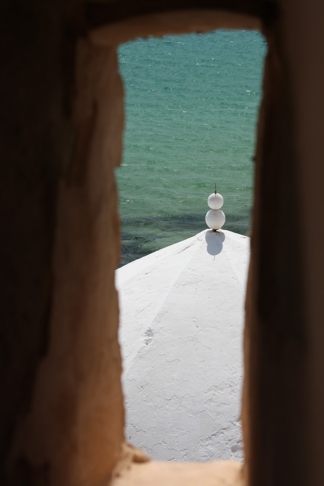 Tutta bianca, finestre con inferiate colorate, porte tunisine, il forte, la merce... le viette.